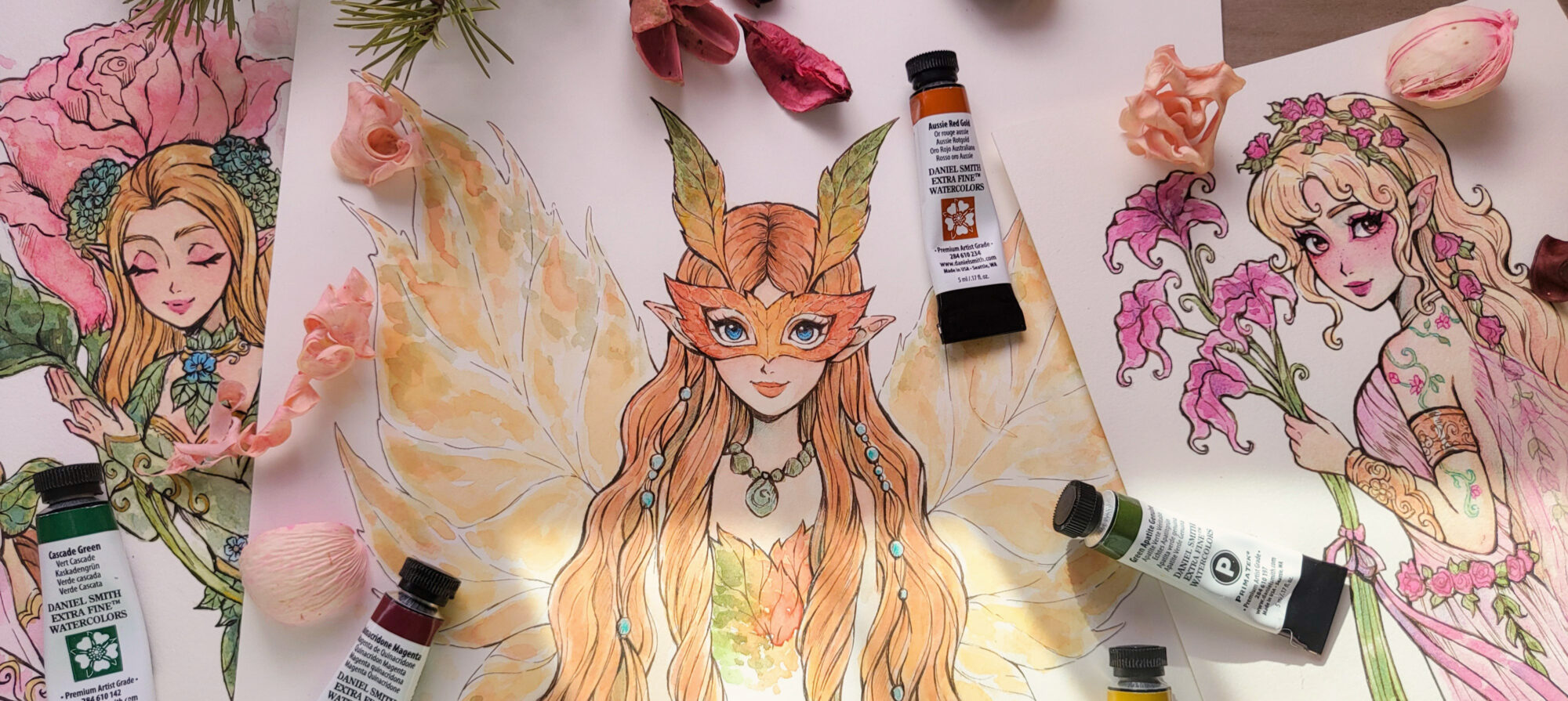 Original Watercolor pieces. Hand-painted with inks and fine watercolors on Arches 300gsm archival quality art paper.